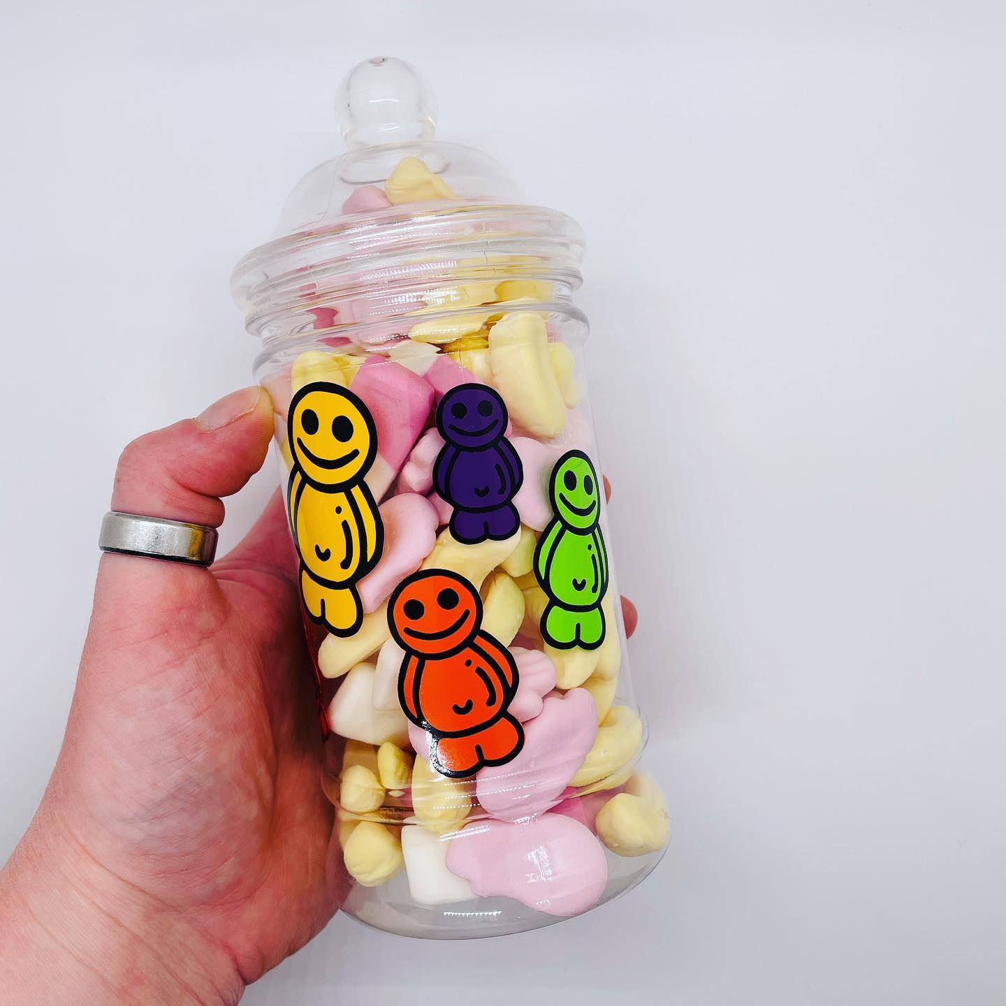 Holds around 500g of sweets - 17cm tall including bobble lid.
